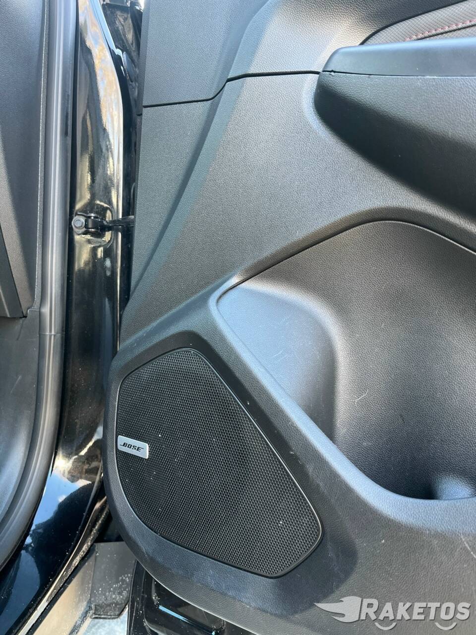 Комбинированная обивка сидений (ткань/кожа), спортивный руль с красной прострочкой по всему салону.
